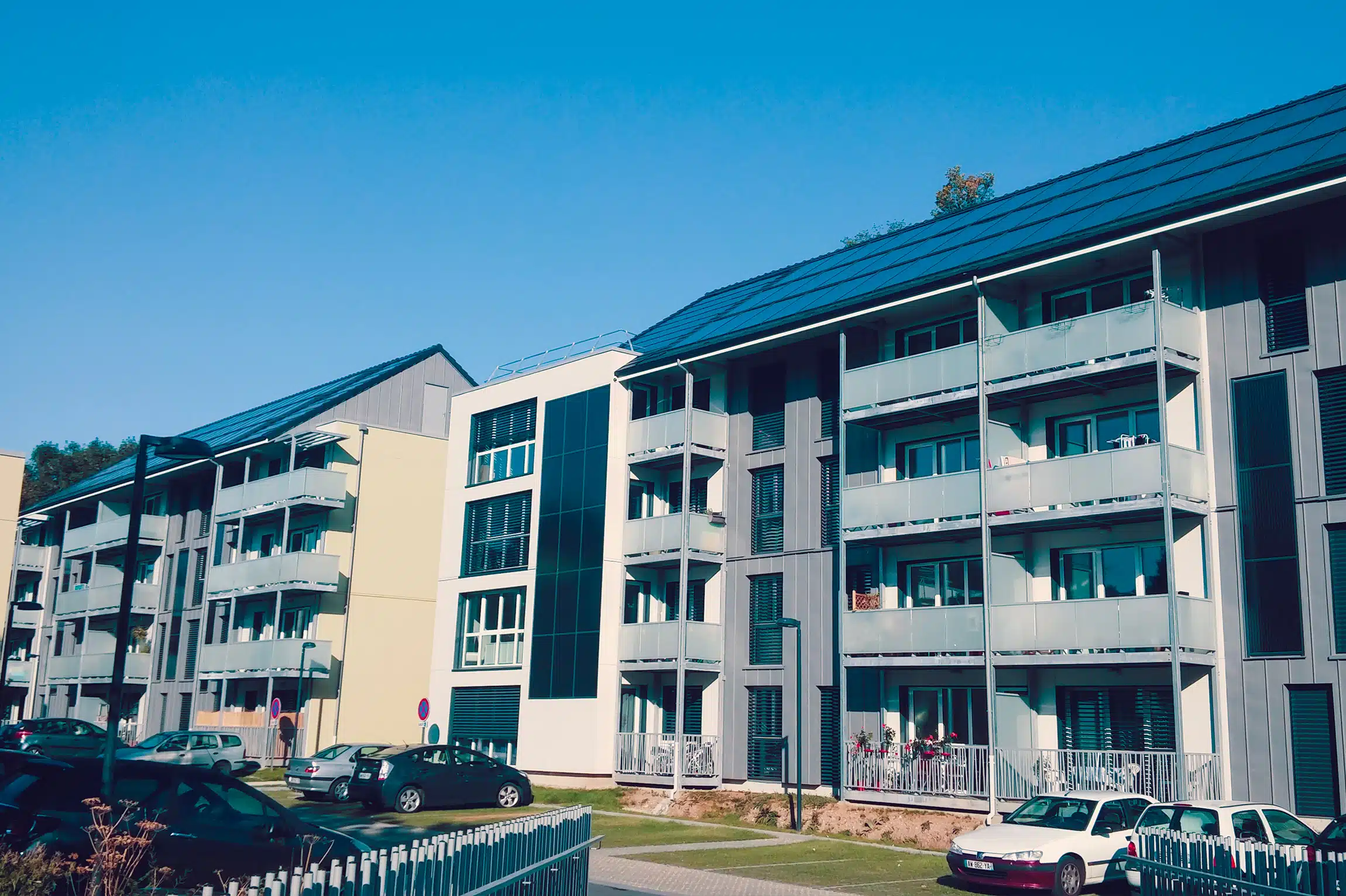 Construite en juin 2015, cette résidence, première de Normandie à atteindre le niveau BEPOS, se compose de 40 logements sociaux répartis sur 3 bâtiments à conception passive. Les panneaux solaires thermiques en toiture assurent la production d’eau chaude sanitaire (ECS) et le chauffage par le sol durant la majeure partie de l’année. Après plusieurs années d’exploitation, le bilan est exceptionnel : consommations 2 à 3 fois inférieures aux prévisions initiales, facture de chauffage et d’eau chaude par appartement inférieure à 100€ par an, et une consommation totale d’énergie primaire de 87 kWh par m² et par an.