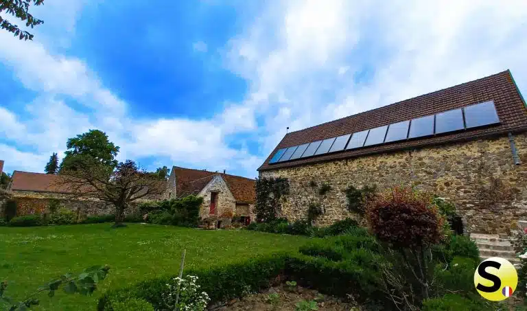 Installation d’un chauffage solaire SolisArt SC2 lors de la création d’une piscine extérieure et de la rénovation de la chaufferie existante à Fresnoy-le-Luat (60800) : ETS Concept Etik a intégré un système SolisArt SC2 de 30 m² de capteurs à cadre noir dans la chaufferie existante, alimentant un ballon ECS de 500 L avec bouclage sanitaire et un ballon tampon de 1 500 L, tout en conservant la chaudière à granulés 48 kW en appoint.